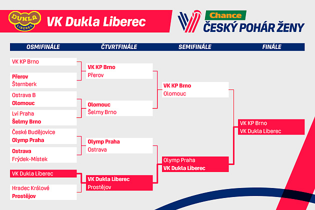 „Myslím, že jsme v tuto chvíli ve slušné formě, protože jsme si přivezly vítězství 3:2 z Ostravy. A víme, že v Ostravě se jednoduše nevyhrává. Ale i kdybych se měla ještě ohlédnout zpátky, tak pohárové semifinále na Olympu pro nás bylo zatím nejlepším zápasem sezóny a jsme rády, že jsme ho zvládly 3:0. Na pohár jsme proto všichni natěšení,“ rekapitulovala aktuální výsledky Dukly kapitánka Lucie Kolářová, která vyzvala liberecké fanoušky k podpoře. „Chtěla bych vás moc pozvat na 22. února do budějovické arény, kde budeme znovu bojovat o pohár, navíc znovu s KP Brno. Doufám, že nás přijdete podpořit, ať už přímo do haly, nebo u televizních obrazovek. Ráda bych se trofeje dotkla, ale prý to nosí smůlu. Doufejme, že si ho znovu dovezeme do Liberce,“ dodala s úsměvem Kolářová, sedící vedle zlaté trofeje z loňské sezóny.