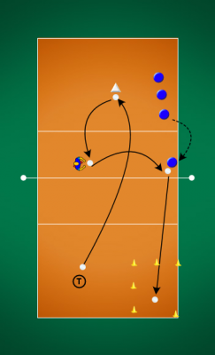 Popis: Hráč útočí v rychlém tempu 5 x za sebou do určené zóny. Dle fyzické kondice a účelu tréninku opakujeme ve 4 – 7 sériích. Postupně přidáváme vybírajícího hráče a blokujícího hráče, měníme zónu odkud se útočí a zónu, kam se útočí.