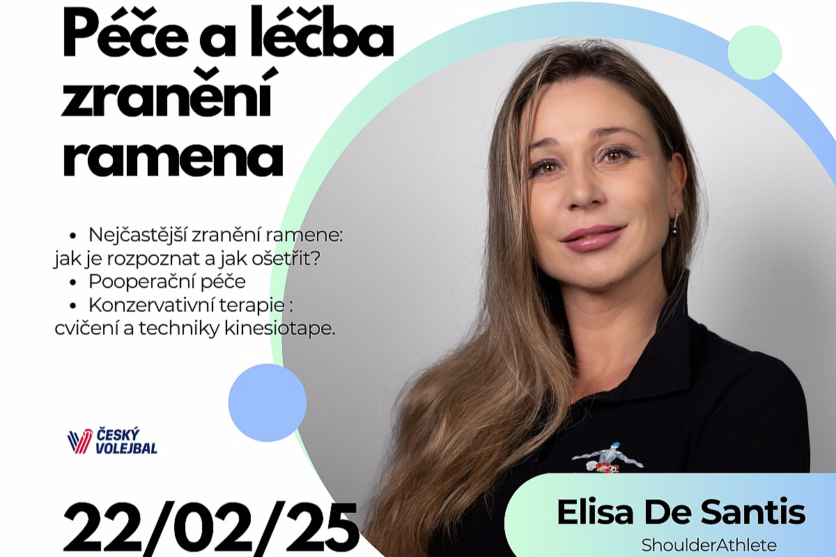 Úsek rozvoje a metodiky pořádá odborný seminář určený pro fyzioterapeuty s názvem Péče a léčba zranění ramene. Italská lektorka Elisa De Santis bude v teoretické i praktické rovině probírat, jaká jsou nejčastější zranění ramene u hráčů volejbalu a beachvolejbalu, pooperační péči i konzervativní terapií.