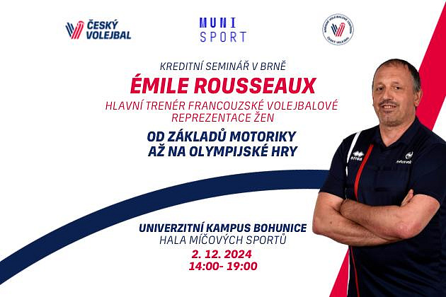 Úsek rozvoje a metodiky ve spolupráci s Národním volejbalovým centrem a MUNI v Brně pořádají kreditní seminář, na který zveme všechny trenéry. Naše pozvání přijala ikona evropského volejbalu Émile Rousseaux. Pro jeho trenérské úspěchy, rozhled a názory na náš sport se mu přezdívá „filozof volejbalu". Druhým přednášejícím je Sebastian Schmitz, který představí své poznatky a klíčová místa pro rozvoj nahrávky a nahrávačů. Seminář bude překládán do českého jazyka.